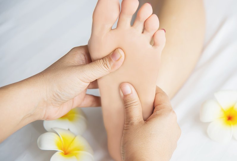 นวดฝ่าเท้าเป็นการบำบัดที่ช่วยผ่อนคลาย ลดความตึงเครียด และกระตุ้นการไหลเวียนโลหิต การนวดฝ่าเท้ายังสามารถช่วยบรรเทาอาการปวดเมื่อยกล้ามเนื้อและข้อต่อ รวมถึงส่งเสริมการนอนหลับที่ดีขึ้น